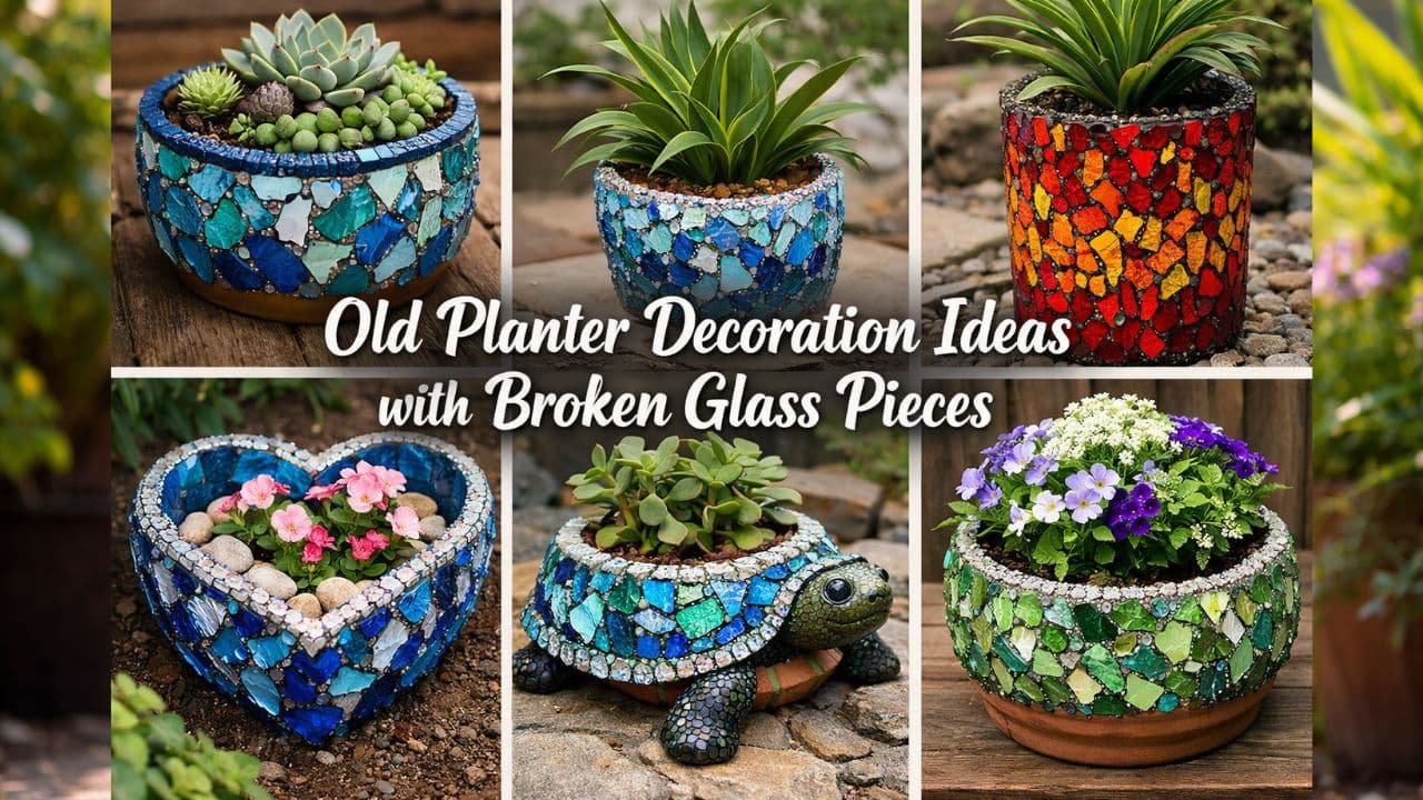 Old Planter Decoration With Mirror: Give a new and stylish look to old pots with broken glass pieces. Learn 5 easy DIY design ideas like mosaic, ombre and floral patterns that will make your garden attractive and unique.