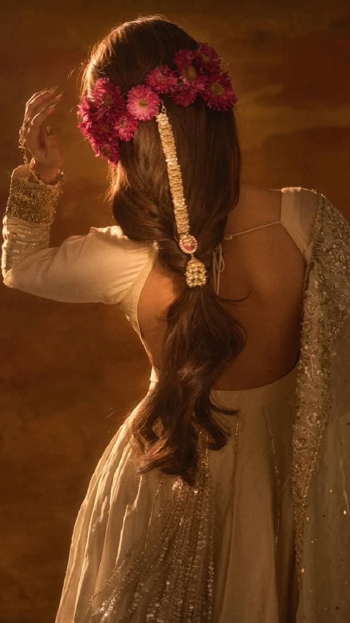 By adopting Avneet Kaur’s hairstyle, you will not need to tie your hair. Make a center part in the open hair and then pin up half the hair.