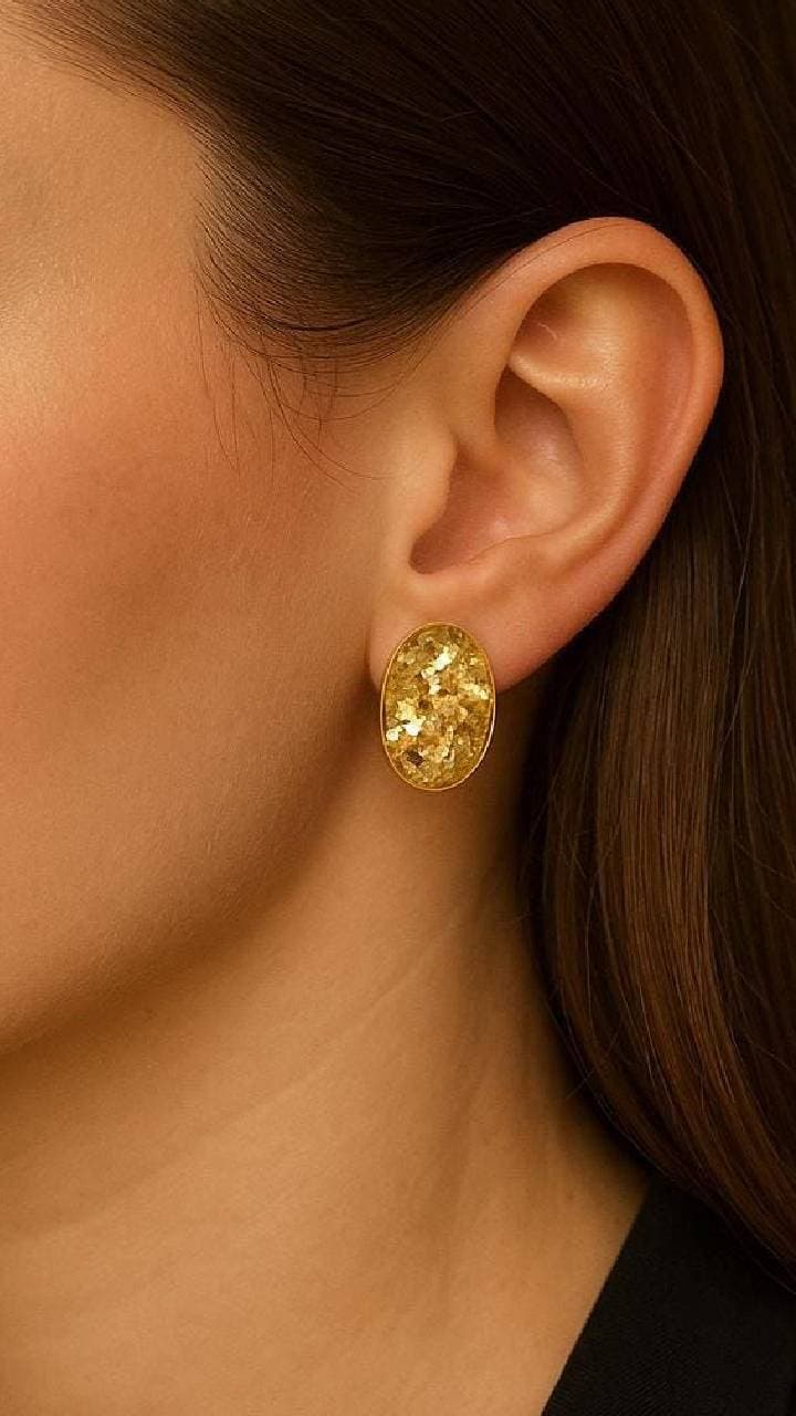 If the budget is high, then you should buy 18K gold plated drop earrings in oval shape. There is colorful stone work in its centre.