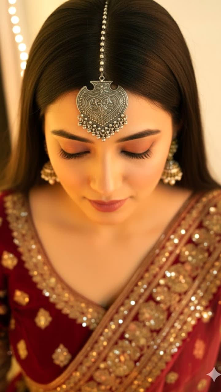 Gold mangtika being expensive does not match with every dress. You can also buy oxidized maang tikka that matches with every ethnic outfit in the range of Rs 200. Which is sassy+fashion combo.