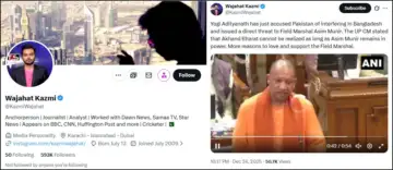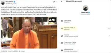 , “Yogi Adityanath has just accused Pakistan of interfering in Bangladesh and issued a direct threat to Field Marshal Asim Munir. The UP CM stated that Akhand Bharat cannot be realized as long as Asim Munir remains in power. More reasons to love and support the Field Marshal.”