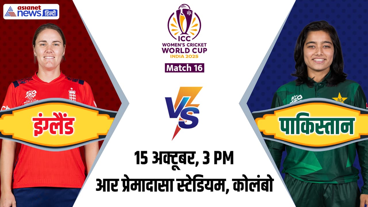 The ICC Women’s World Cup 2025 match between England and Pakistan women’s team will start at 3:00 pm Indian time, with the toss taking place at 2:30 pm. Live telecast of the match will be on Star Sports Network and live streaming on Jio Hotstar. Apart from this, you can also see updates, side stories and fun facts related to the match on the website of Asianet News Hindi.
