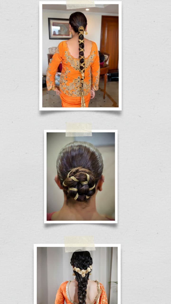 If you want to make a trendy bun instead of a simple bun, then braid your braid with gota patti lace, then wrap it round and make a bun and secure it with a bun pin.