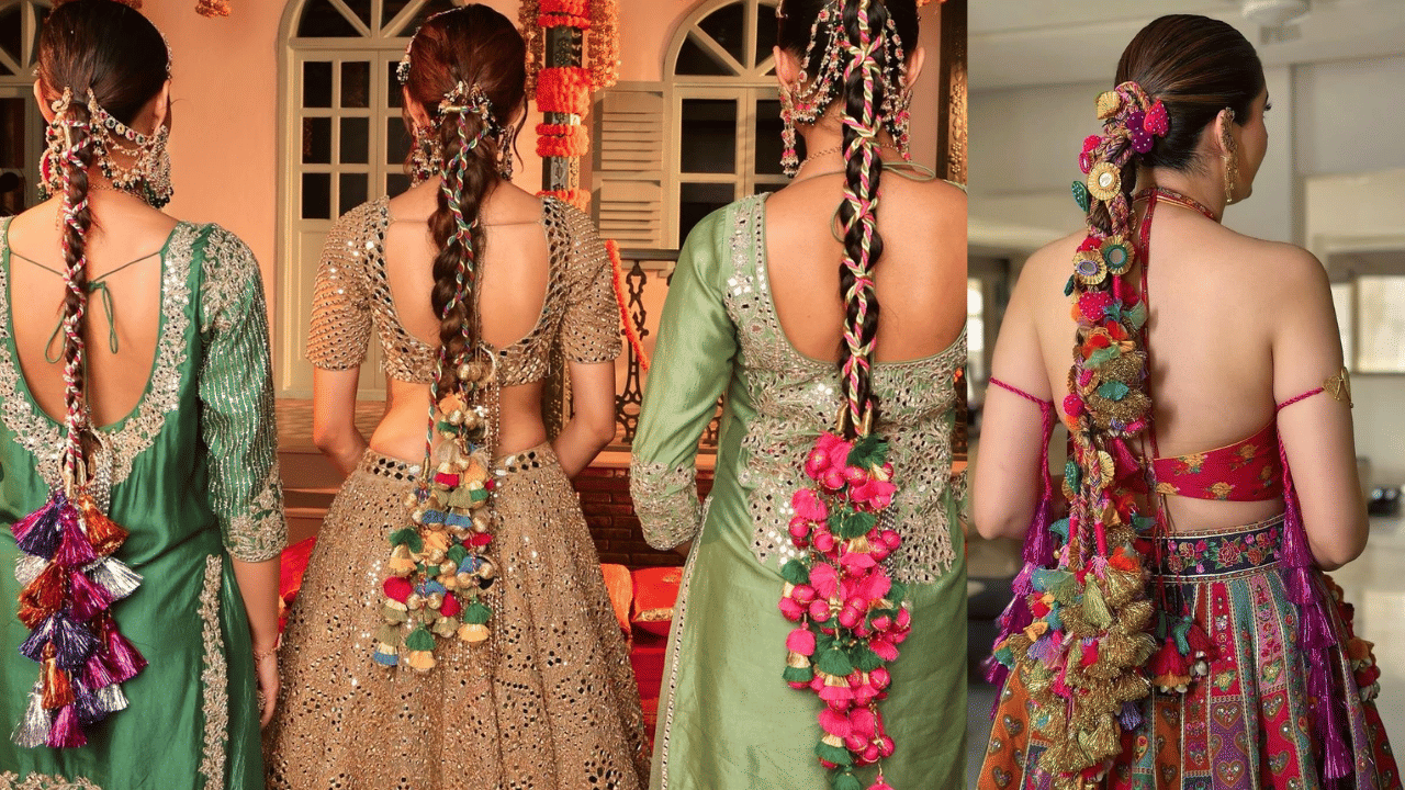 Weave multicoloured silk threads into a simple braid for an authentic Punjabi vibe perfect for Lohri. Adorned with basic tassels, it sways gracefully during dances, evoking rural charm while pairing seamlessly with ethnic suits.