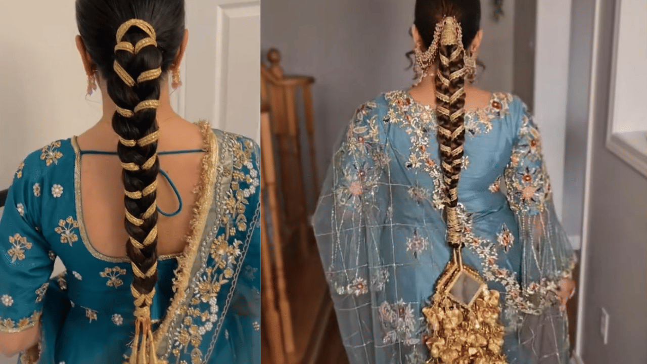 Luxe golden tassels dangle elegantly, infusing royalty into your Lohri 2026 hairstyle. Braid into a fishtail plait for weddings or festivals; suits girls wanting a bold, head-turning accessory with ethnic outfits.