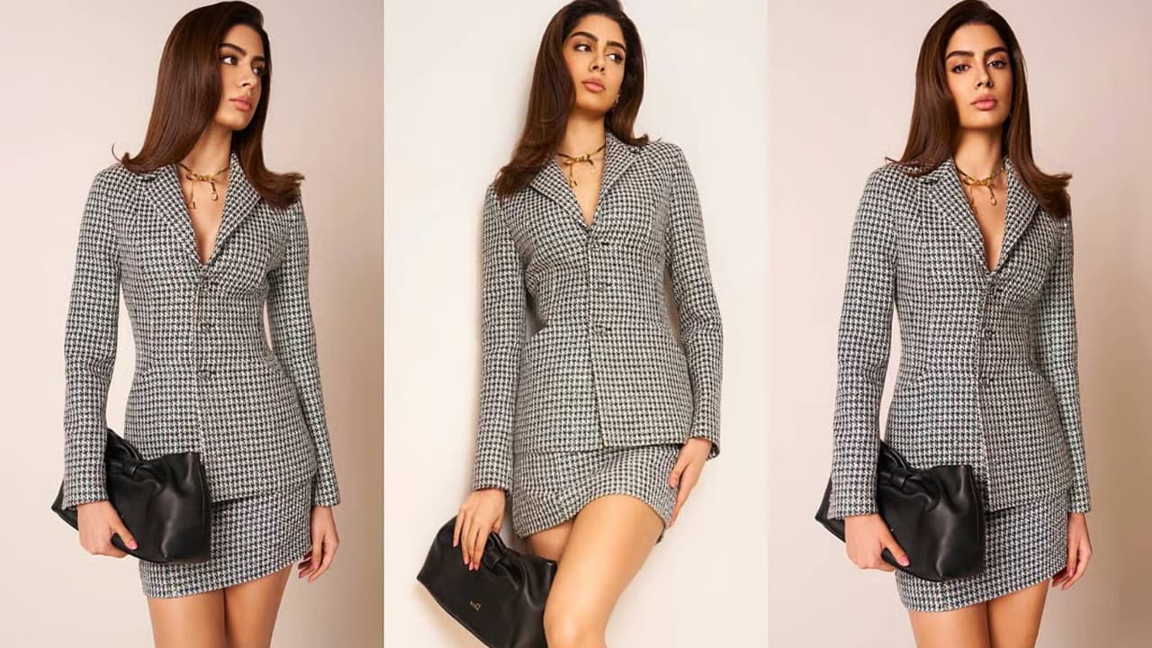 Khushi Kapoor made headlines with her look in a black-white houndstooth outfit at the Dior Spring/Summer 2026 Cocktail Showcase in Paris. Her Parisian, minimal and classy look in the iconic bar jacket, miniskirt and viral bow bag has gone viral.