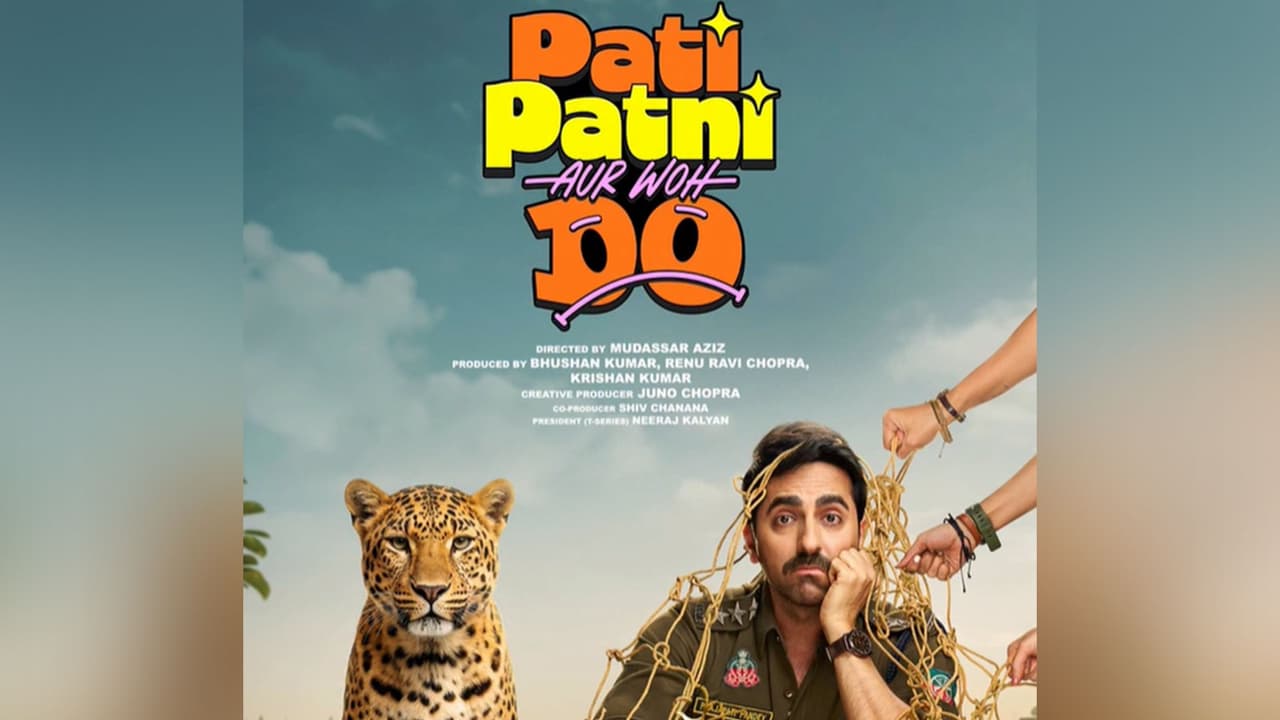 Khurrana shared the poster on Instagram, offering audiences a glimpse into the film’s quirky narrative and visual tone. The first-look poster presents Ayushmann Khurrana in a khaki uniform, visibly flustered as he appears tangled in a golden net or rope. A large leopard sits calmly beside him, creating a striking contrast with his panicked expression. Khurrana captioned the Instagram post, “Shikari khud hogaya shikaar! Ab Jaal mein phas gaye humare PRAJAPATI PANDEY. Ho jao #PatiPatniAurWohDo ke liye taiyaar! In cinemas 15th May 2026!” The announcement highlights the ensemble cast featuring Sara Ali Khan, Wamiqa Gabbi and Rakul Preet Singh, positioning Ayushmann’s character Prajapati Pandey at the centre of the unfolding chaos and comedic entanglement.
