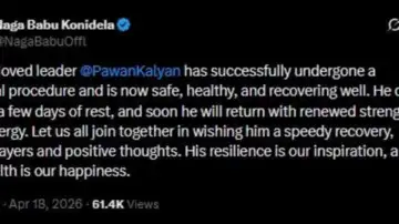 Actor-politician Nagendra Babu shared a health update on X and informed fans that Kalyan “has successfully undergone a medical procedure and is now safe, healthy, and recovering well. He only needs a few days of rest, and soon he will return with renewed strength and energy. Let us all join together in wishing him a speedy recovery, with prayers and positive thoughts. His resilience is our inspiration, and his health is our happiness.”