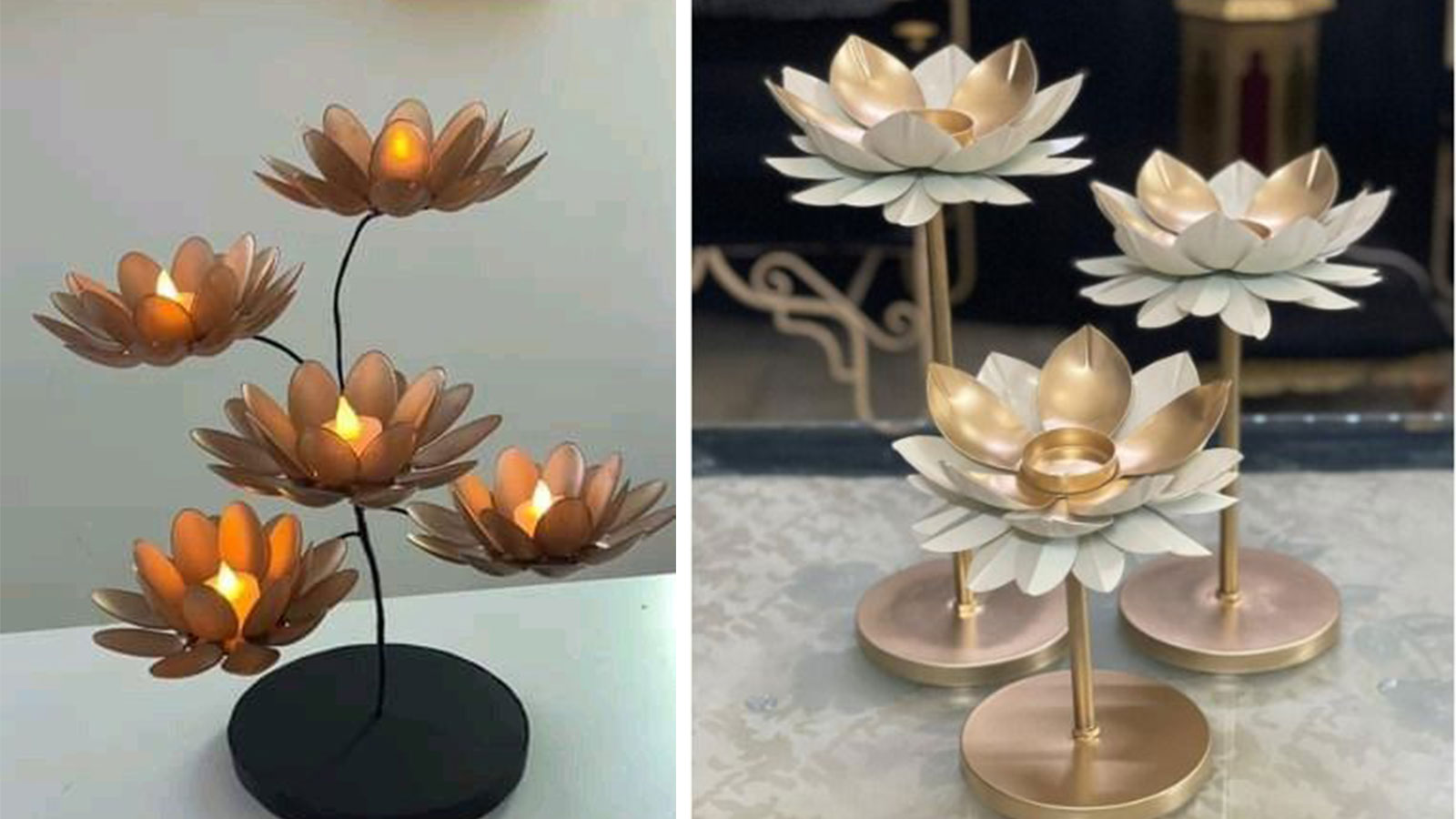You can also use plastic spoons as candle holders. Just keep in mind that do not put original lamps or candles in it. Install lamps or candles with artificial batteries in it. Cut the stem of a plastic spoon and make a flower like shape. Create a double layer of it and place candles or lamps in the middle.