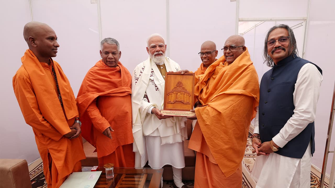 Prime Minister Narendra Modi on Friday during his visit Kerala met with seers associated with the Sivagiri Mutt in Varkala. PM Modi was in Thiruvananthapuram today where he flagged off four trains and inagurated a slew of developmental projects