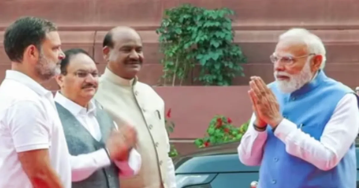 Visuals from the scene showed the Prime Minister pausing to speak with Rahul Gandhi in a cordial manner, with both leaders appearing engaged in a brief conversation before continuing with their schedules. The interaction took place in the presence of other officials and attendees, many of whom momentarily paused to observe the exchange, making it a standout moment amid otherwise routine parliamentary proceedings.