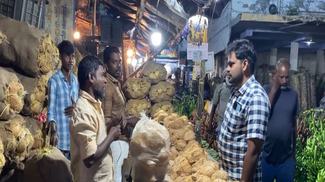 Ahead of Pongal, one of Tamil Nadu’s most important festivals, large quantities of agricultural produce have been brought to the Thoothukudi market area for sale from several districts. Essential items for Pongal celebrations, such as coconuts, banana bunches, banana leaves, sugarcane, palmyra tubers, turmeric roots, and other agricultural products, have flooded the market, driving brisk trade. As a result, the Thoothukudi market area is witnessing heavy crowds and a festive atmosphere.