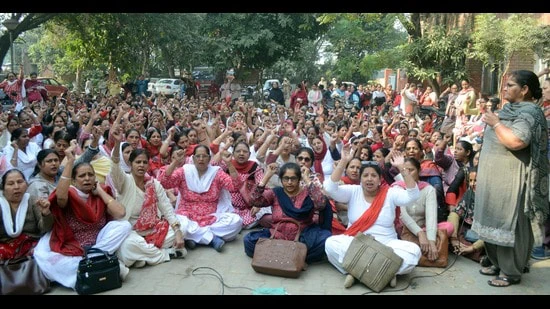 Another major grievance is the lack of basic infrastructure. The state government had promised smartphones for operating the tracker app, but workers say they have yet to receive them. “We are using our own phones to keep the system running, and still we are served explanation notices for incomplete Facial Recognition System (FRS) entries. Some workers are even threatened with termination,” said Bhinder Kaur, general secretary of the union.