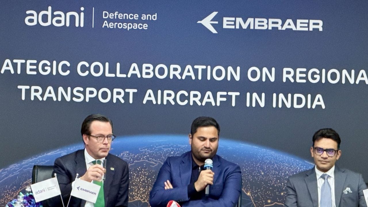 #WATCH | Delhi | Embraer and Adani Defense & Aerospace announce Strategic Partnership to Establish Regional Transport Aircraft Ecosystem in India