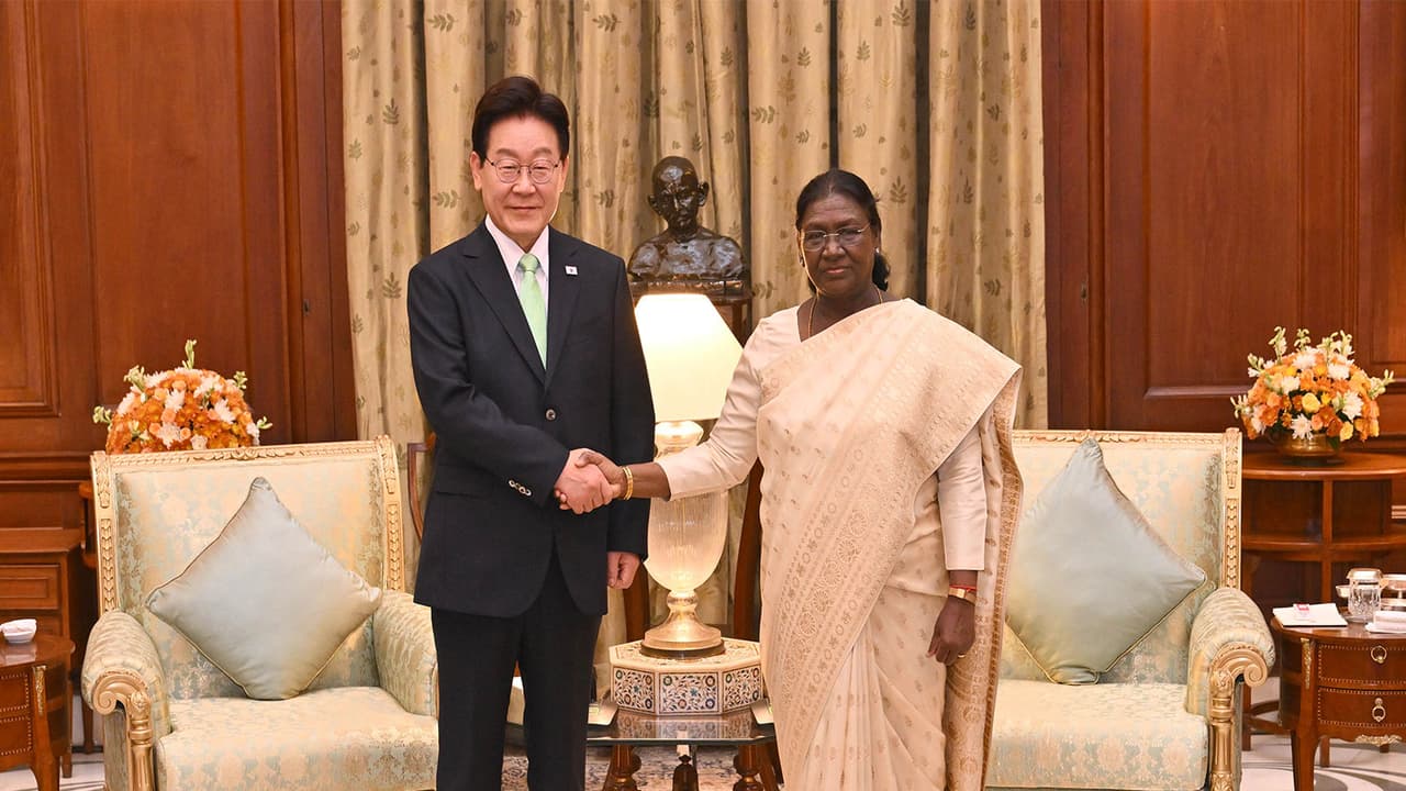 President Droupadi Murmu on Monday received Lee Jae Myung, President of the Republic of Korea, at the Rashtrapati Bhavan and hosted a banquet in his honour. Welcoming President Myung on his first visit to India, the President appreciated him for his significant contributions to strengthening India-Korea bilateral relations, particularly as Chair of the Korea-India Parliamentary Friendship Group. As per a statement from the President’s Secretariat, she said that this visit, within the first year of his presidency, reflects the importance he attaches to our relationship.