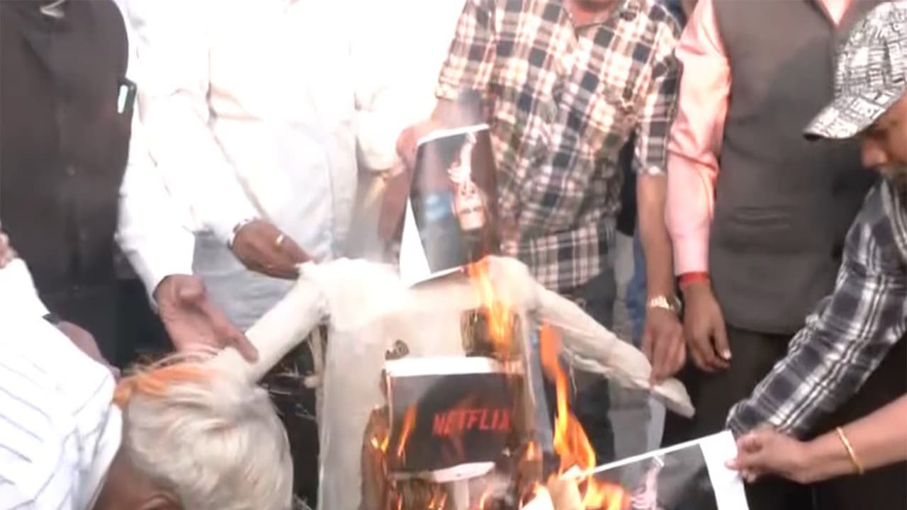 Protests erupted across India on Friday against the Netflix film ‘Ghooskhor Pandat’, with demonstrators burning effigies of the producer, director and actors at Subhash Chowk in Prayagraj. Protesters also demanded a ban on the OTT platform. The protesters alleged that the film was made with the intention of targeting Hindus and Brahmins, which will not be tolerated at any cost. The protesters made it clear that if the film’s name and content are not changed within three days, protests will be held in Prayagraj and across the country.