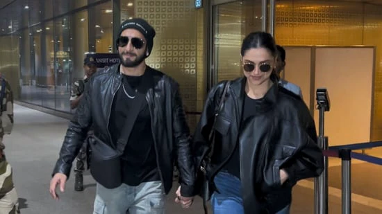 Deepika and Ranveer walked out of the airport in matching black leather jackets and blue jeans. Both were wearing sunglasses, perhaps to protect their eyes from camera flashes. The held hands as they wades through screaming and hooting photographers, one of whom shouted ‘Dhurandhar’ for Ranveer. This brought a smile to Deepika’s face.