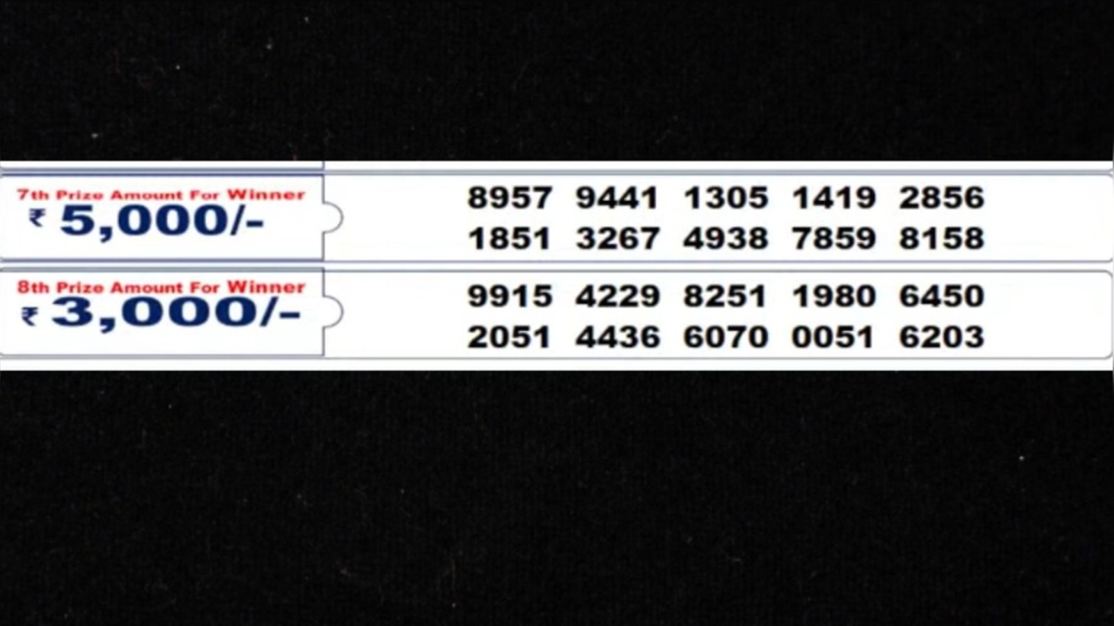 - Punjab Lottery Diwali Bumper 2025 (7th Winner): 8957, 9441, 1305, 1419, 2856, 1851, 3267, 4938, 7859, 8158