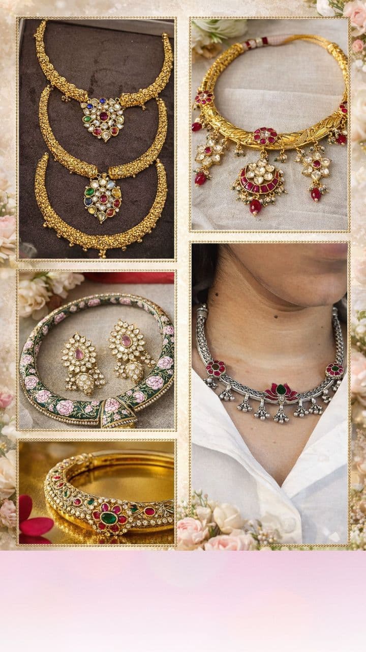 If you don’t like golden Hasli, then you can take silver Hasli like this. This silver Hasli is traditional and classy, with wonderful lotus flower and ghungroo work.
