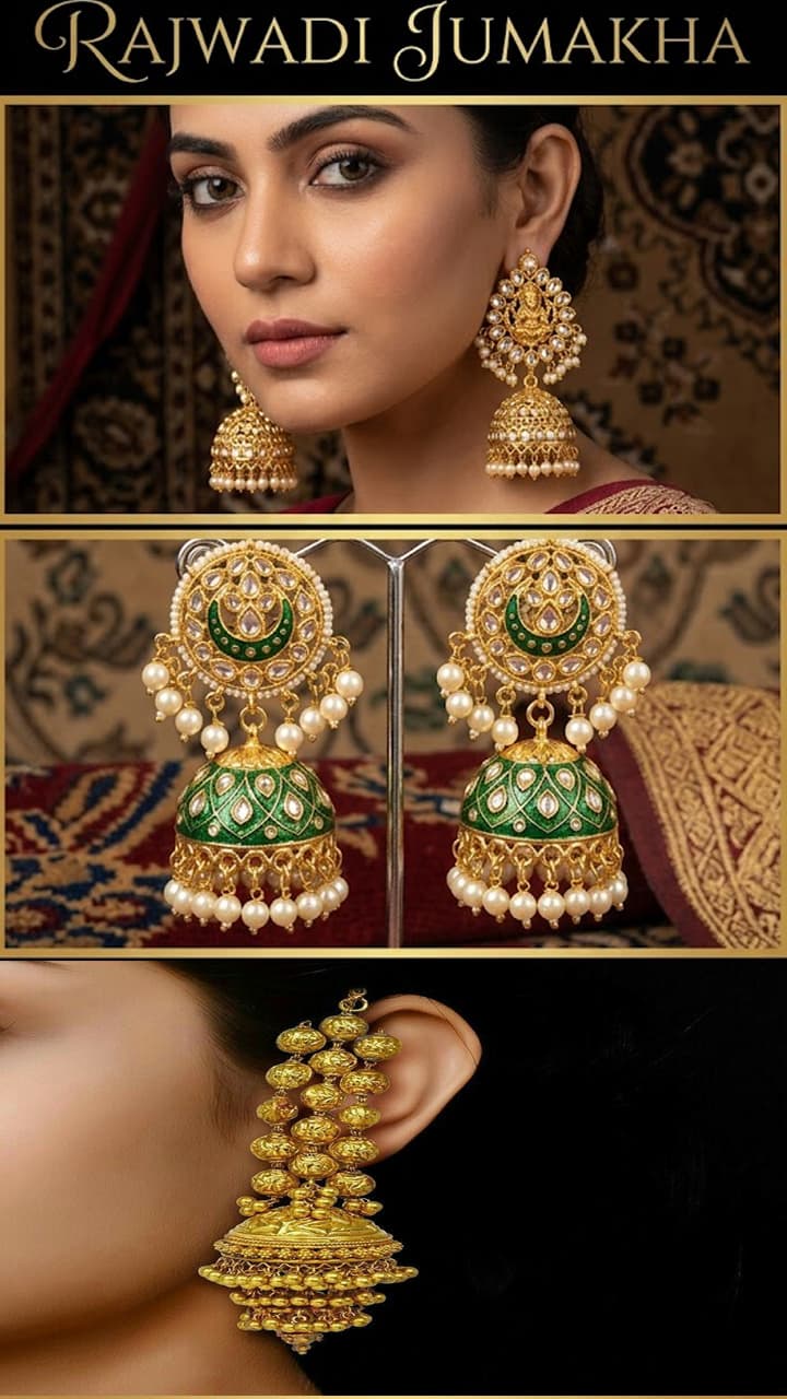 This golden earring has heavy netted design, stone work and beautiful chandelier style, which gives it a royal look. Perfect choice for wedding and festive look.