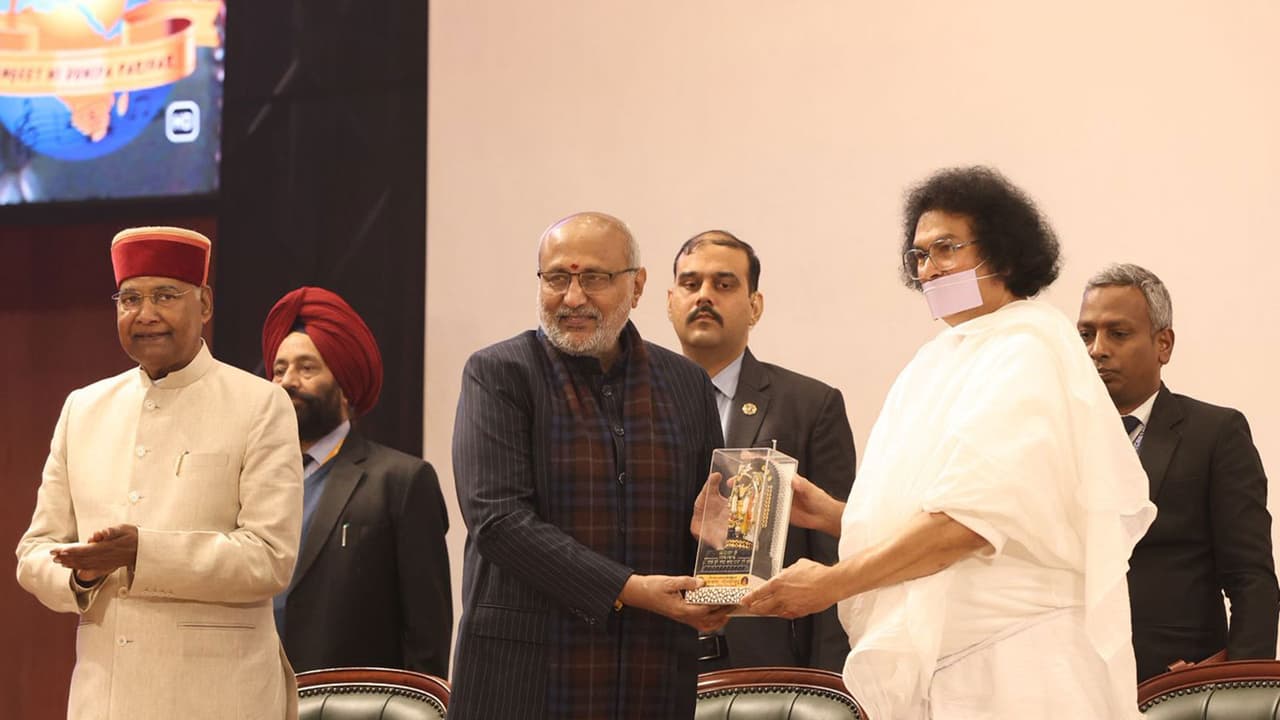 VP CP Radhakrishnan attended Morari Bapu’s 971st Ram Katha at Bharat Mandapam, calling it a medium for timeless values. The nine-day event, also attended by Ram Nath Kovind and Acharya Lokesh, aims to inspire global peace and harmony.