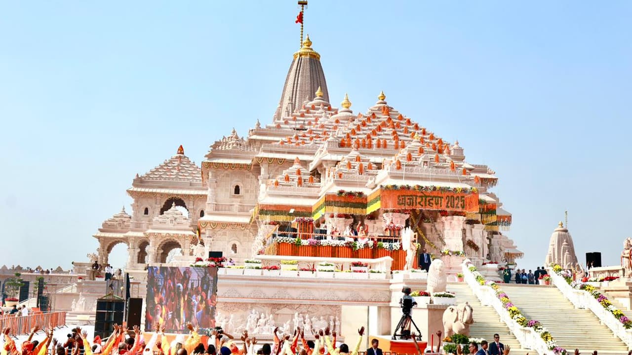 Ayodhya was immersed in devotion due to the hoisting of the religious flag on the peak of Shri Ram temple. Thousands of devotees cheered and the ceremony turned into a cultural festival. Devotees who came from far and wide described it as a moment like Treta Yug and praised the role of Modi-Yogi.