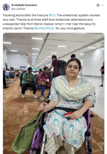 Actor Ranbir Kapoor is garnering praise online for offering assistance to a wheelchair user at the Delhi airport. The traveller, Srubabati Goswami, shared her experience on social media.