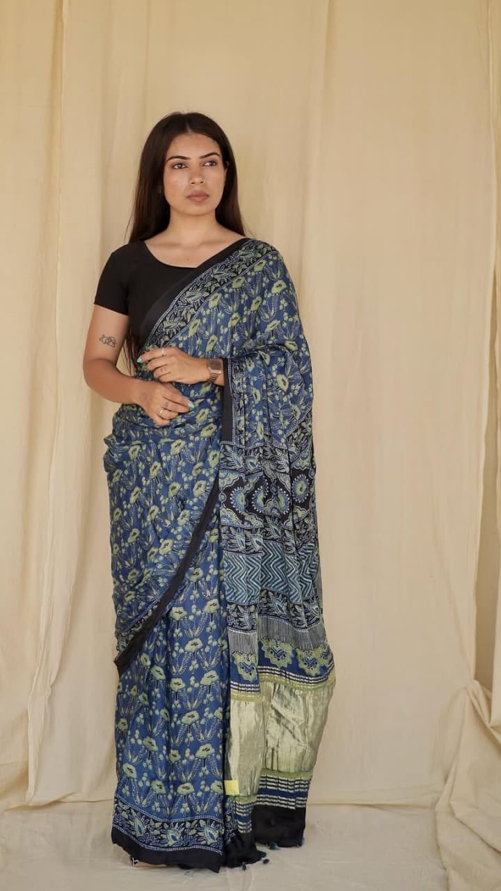 Choose Ajrakh print saree for teachers to look fashionable and elegant in school. It gives a rich look with cotton blouses, blazers and even high neck sweaters. Here are some fancy patterns that will come in handy.