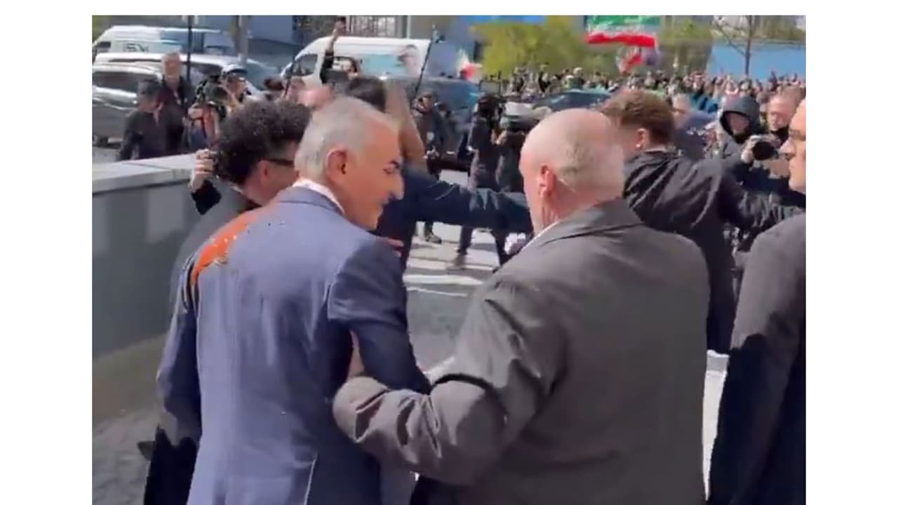 Iran’s exiled crown prince Reza Pahlavi was attacked with ketchup in Berlin, a video of which was shared by Iranian state media. The attack occurred as he was in Germany to urge EU leaders to increase pressure on the regime in Tehran.