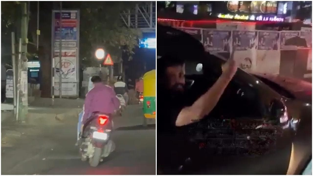 The first notable incident occurred around 11 pm near the Hosakerehalli flyover. A biker displayed extreme recklessness while riding, standing on the moving bike and performing stunts. He refused to give way to a car approaching from behind and further provoked the driver by making obscene gestures.