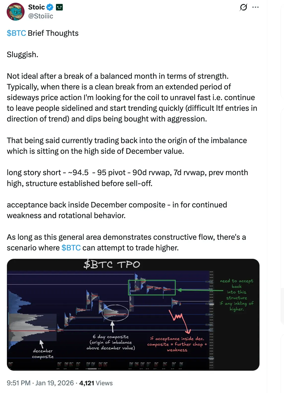​Crypto analyst Stoic also pointed out on X that the current Bitcoin price is back into the December value area, which he frames as a new support zone that the asset must hold to avoid further dips.