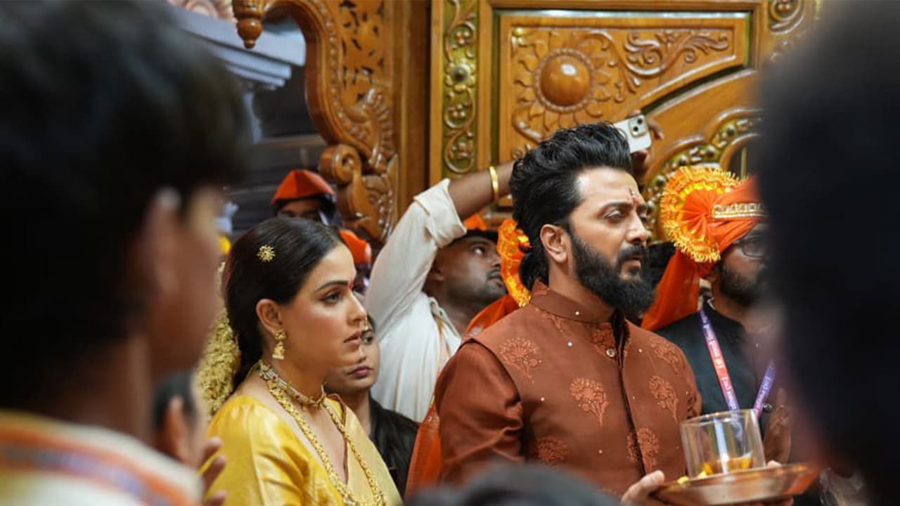 Riteish Deshmukh and Genelia Deshmukh are promoting their film ‘Raja Shivaji’. The couple visited a temple to offer prayers. Riteish directs and stars in the historical drama, which also features Sanjay Dutt, Abhishek Bachchan and others.
