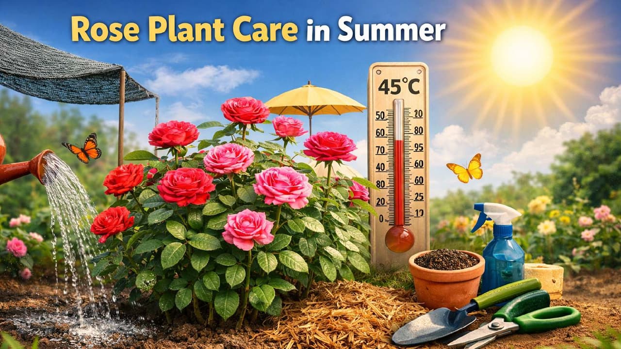 Rose Plant Care in Summer: Rose plants wither quickly in extreme heat, but with proper care they can be kept green. By adopting a few simple steps—such as watering at the right time, protecting from direct sunlight, mulching, and providing nutritious fertilizer—you can keep your rose plants blooming even during the summer months.