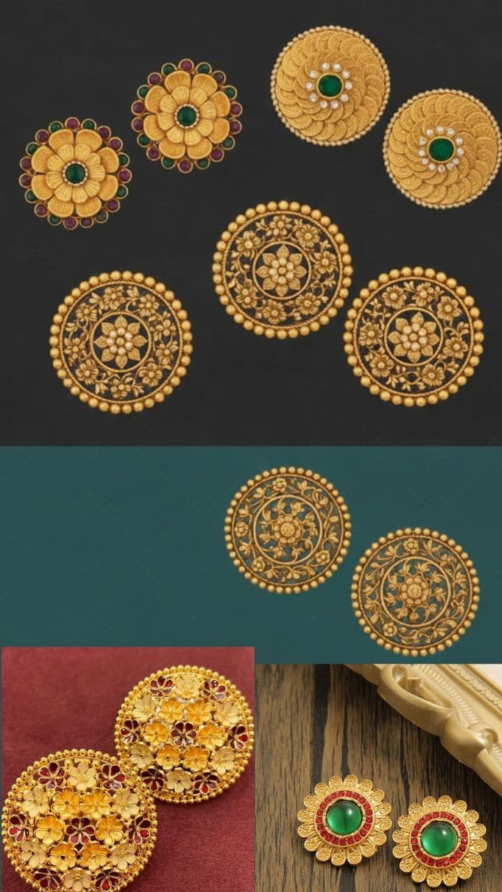 If you want a different but beautiful design, you can get such designs with meenakari and small minimalist flowers in round tops. This will make the ears beautiful and change the whole look.