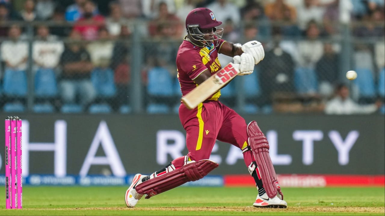Zimbabwe vs West Indies: जिम्बाब्वे के खिलाफ वेस्टइंडीज ने तूफानी बैटिंग की. शिमरॉन हेटमायर ने 85 रन बनाए वहीं रॉवमैन पॉवेल ने भी तूफानी हाफसेंचुरी लगाई. अपनी हाफसेंचुरी के दौरान इस खिलाड़ी ने कमाल का छक्का लगाया. यही नहीं उन्होंने सिकंदर रजा को भी चोट पहुंचा दी. पॉवेल ने 13वें ओवर की आखिरी गेंद पर ऐसा छक्का लगाया जिसके टी20 वर्ल्ड कप में चर्चे हो रहे हैं. डियॉन मायर्स की गेंद पर उन्होंने कवर्स के ऊपर से छक्का मारा, ये गेंद 22 मीटर ऊंची और 106 मीटर दूर जाकर गिरी. इस शॉट को जिसने देखा वो हैरान रह गया. वेस्टइंडीज के खिलाड़ी भी अपनी आंखों पर यकीन नहीं कर पा रहे थे.