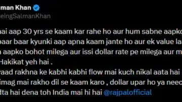 Salman shared a picture of Rajpal and praised him for his hard work and dedication towards his craft, which has kept him going for over 30 years. The superstar added that movie offers will never dry up for him as he brings value to a project. “Kaam toh aapko bohot milega aur issi dollar rate pe milega aur milte rahega,” he wrote, taking a sly dig at the comment passed against Rajpal at the event. He further played mediator by asking Rajpal not to take things to heart. “Dena hi hai toh dimag mai rakho dil se kaam karo, dollar upar ho ya neeche kya farak padta hai dena toh India mai hi hai,” he concluded.
