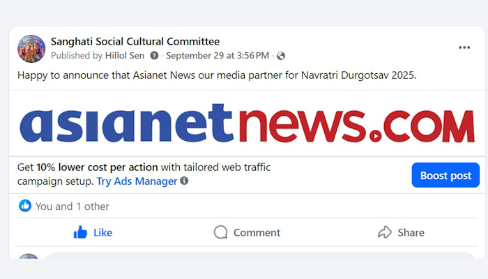 Sanghati Social Cultural Committee proudly welcomes Asianet News as its official media partner for Navratri Durgotsav 2025.
