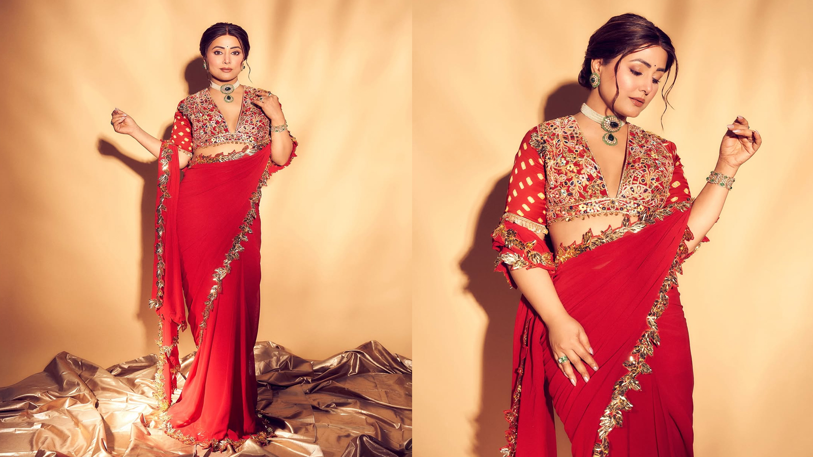 Hina Khan in red gota-patti saree