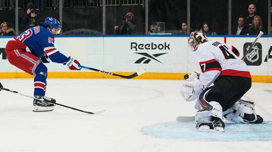 NEW YORK (AP) – The Ottawa Senators secured a 2-1 victory against the New York Rangers on Monday night, allowing only 10 shots on goal, the fewest by an NHL team since 2015. This performance marked a franchise record for the Senators and the Rangers’ lowest shot total since the NHL began tracking shots in 1959. Despite facing significant challenges, including injuries to key players, the Senators managed to maintain their defensive structure.