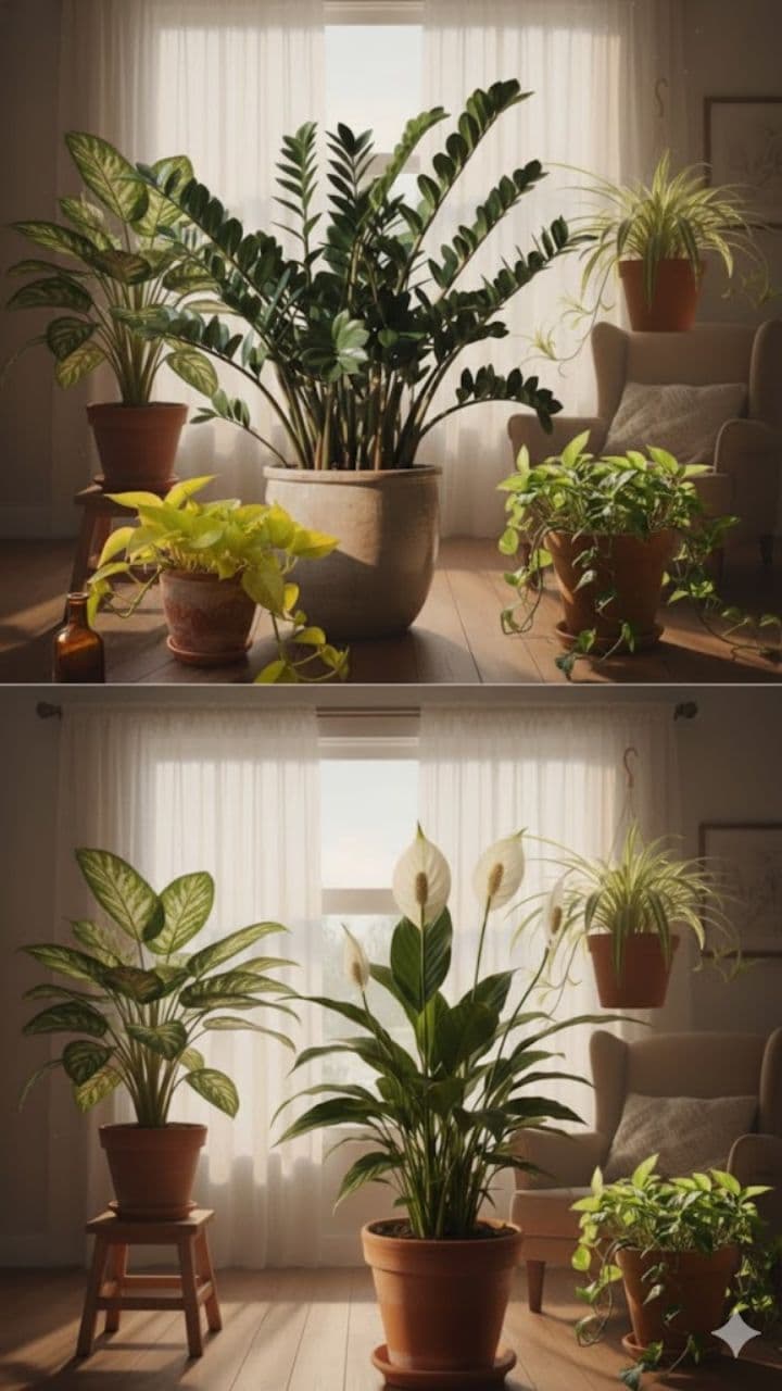 Money plant and snake plant are fast growing plants even in low light. Gives a green look to the house by using less water and spreading vines. It releases oxygen even at night and is very low maintenance.