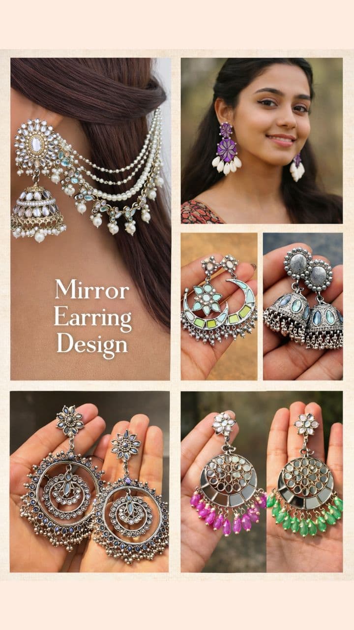 Sheeshe Wali Earrings Design: Mirror work earrings for the moon face, will shine like stars in the ears. Mirror Work Earring Designs For A Moon Like Glow And Sparkling Beauty