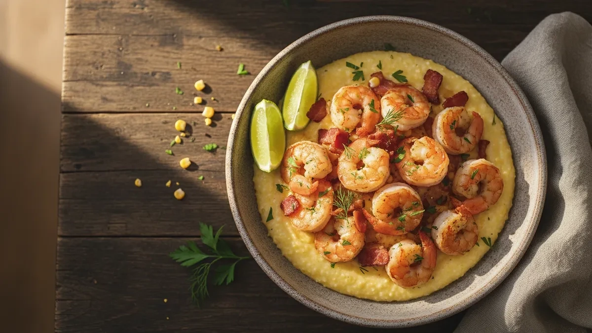 Shrimp and Cheese Grits is a warm Southern U.S. cuisine dish that brings together tender shrimp, creamy grits, sharp cheddar cheese, and crisp bacon.