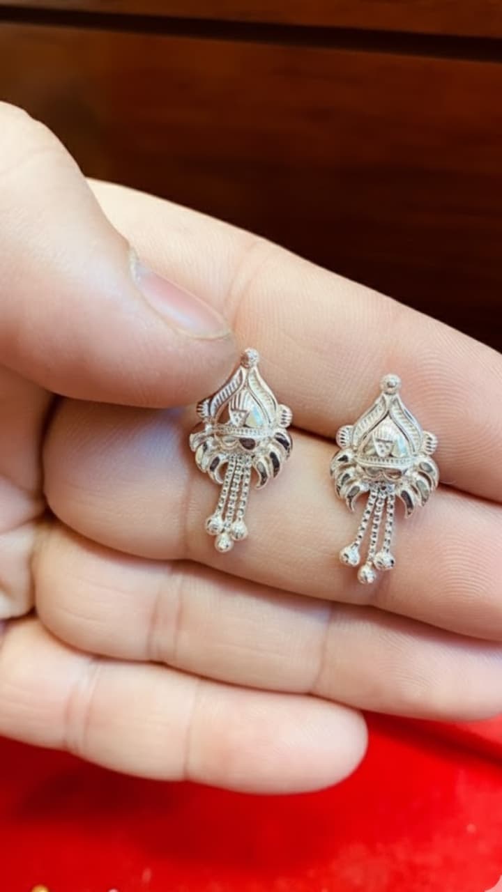 Silver Ear Tops: First earning in the name of mother, silver tops design in low budget. Silver Ear Tops Earrings Stud Chandi Ki Bali For Mother