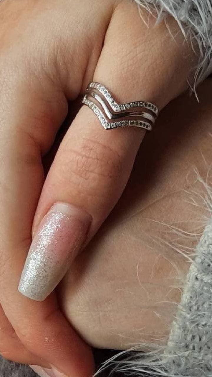 White gems have been used in the silver V shape ring, which makes it look beautiful. According to astrology and beliefs, wearing a silver ring on the thumb is auspicious.