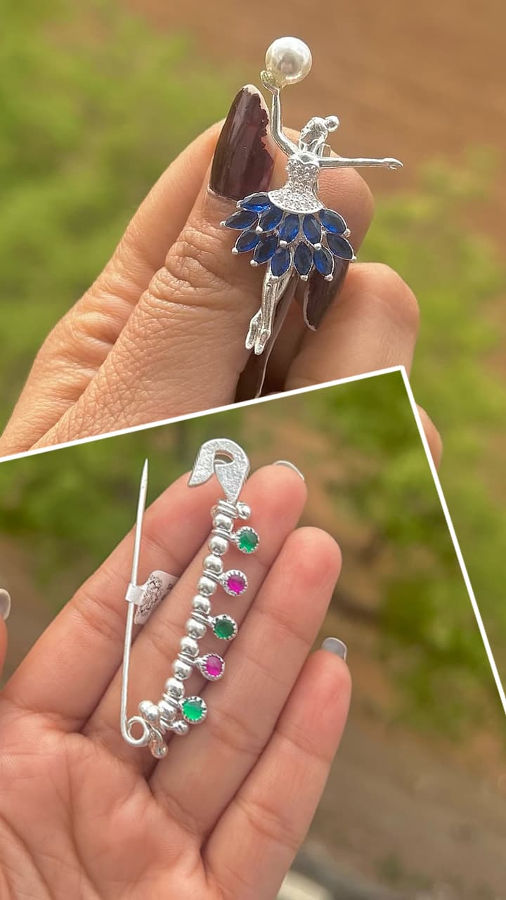 Nowadays silver safety pins are in trend, which despite being small in appearance, give an elegant, graceful and exclusive touch to the saree. Buy Fancy 6 Silver Safety Pin Design in 1K Budget.