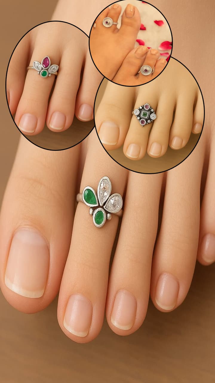 You can decorate your feet with purple stone toe rings in oxidized silver. If you are wearing a white or purple saree or suit, then definitely wear Bichhiya of this pattern on your feet.