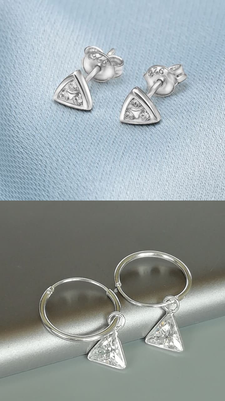 Metallic triangle shape earrings for 5 year old daughter is a decent design which comes on plain work. These can also be bought on stones or colorful gems. This will be made in 5 grams of silver.