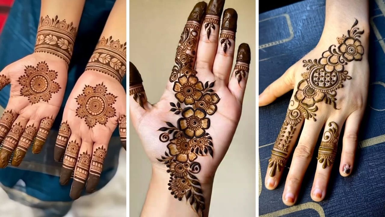 This design will look very beautiful on the back hand and is also simple. First start the design by making a flower from the corner of the hand and then make another half flower above the curve. Make a hop round on top of it, fill the design in it and then make flowers and leaves. Once again complete the design by making flowers and curves on top of it, lastly complete the design with a thick outline. (image: mehndidesigns_ideas_)