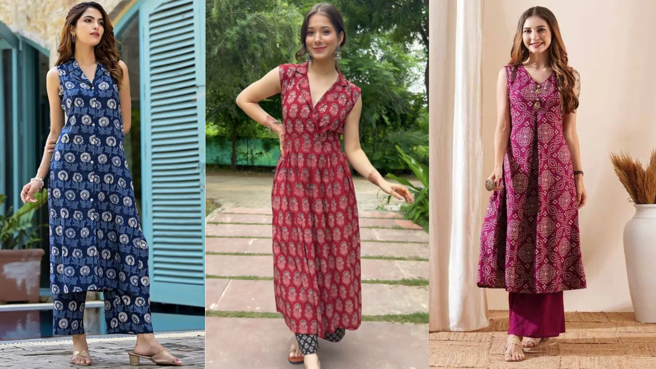 Sleeveless Kurta Sets Ladies: Latest designs of sleeveless kurta sets for summers, which are perfect in style and fashion. Also, these can be purchased online-offline in the range of Rs 500-700.