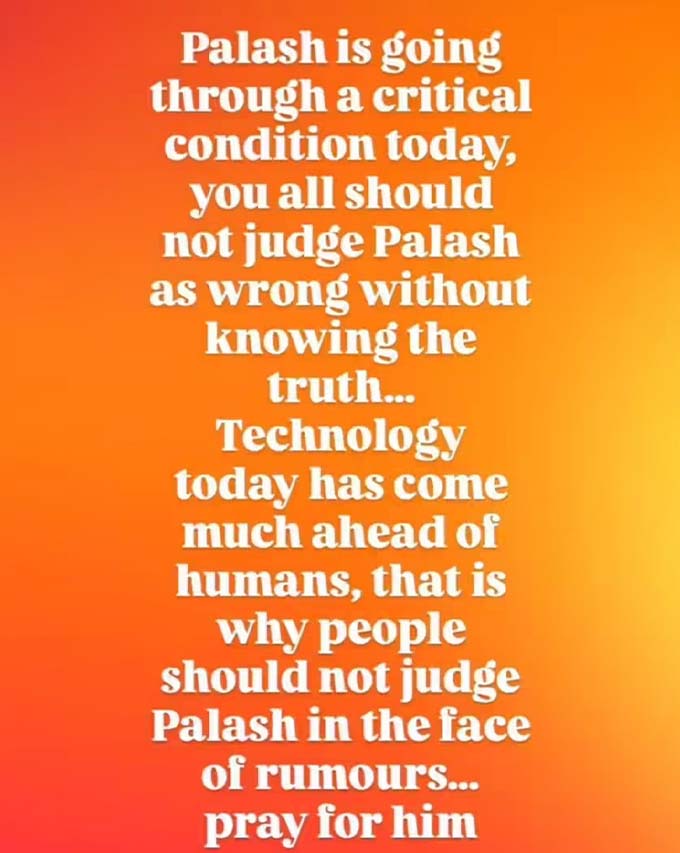 Online rant in the wake of this storm over Palaash Muchhal saw the cousin of the musician come out on social media to defend him, calling on people to refrain from jumping into conclusions based on speculation. She wrote people were being most harsh and judgmental without knowing facts or understanding the sensitivity of the matter.